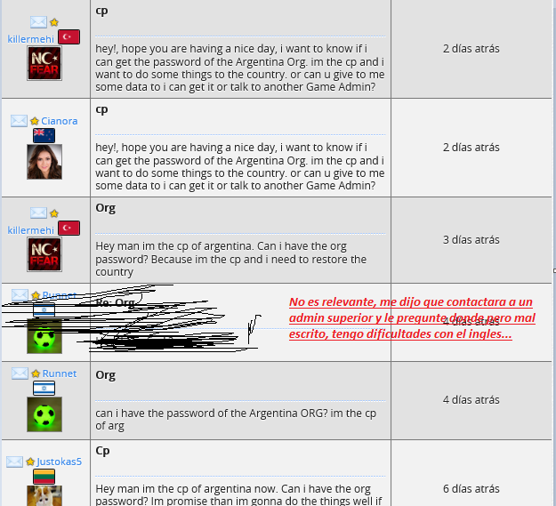 En resumen me estaban diciendo que saque a este cp de mierda y que apoye a un jugador que no estaba en el pais para que tenga la org y asi luchariamos juntos. Que paso?